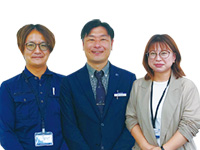 岡松孝太(工事)・山口裕章(営業)・石川絵理(設計)(写真左から)