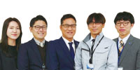 後藤真衣(設計)・貝原 僚(設計)・穴手義史(営業)新宮重善(工事)・馬場崚太(設計)(写真左から)
